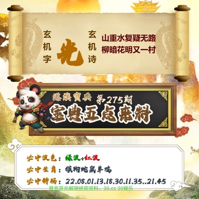 275期【无错九肖】已公开
